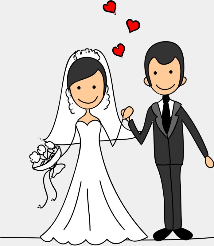 Cartoon Wedding Groom Bride Holding Hands 6